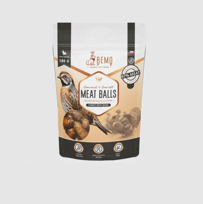 Bemo Meat Balls półmiękkie smaczki dla psów indyk z przepiórką 180g
