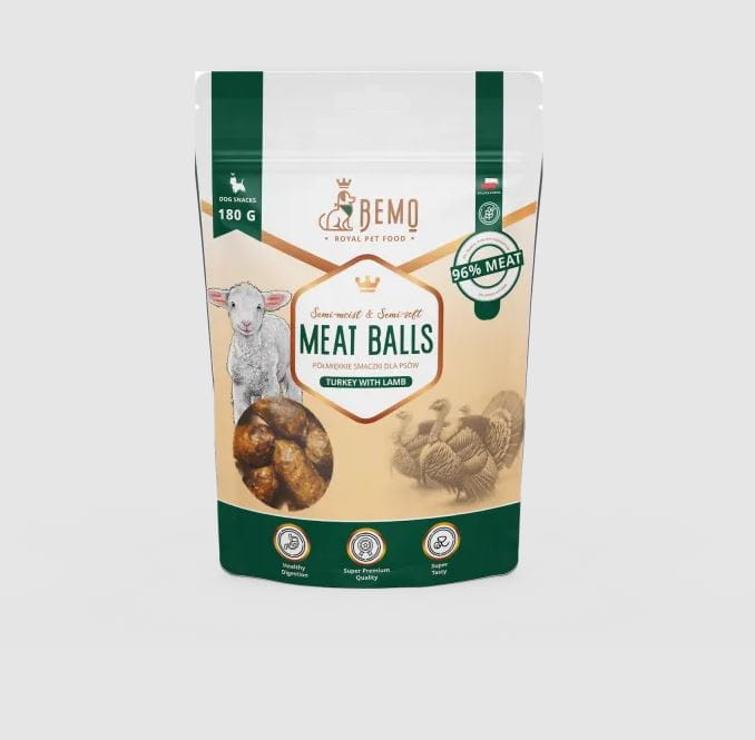 Bemo Meat Balls półmiękkie smaczki dla psów z indykiem i jagnięciną 180g