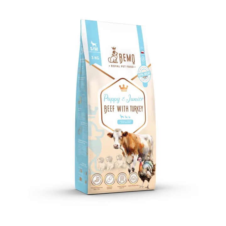 Bemo Puppy Junior Beef with Turkey 3kg - karma sucha dla psa wołowina z indykiem S/M