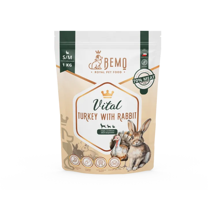 Bemo Vital 1KG - wzmacniająca odporność karma sucha dla psa z indykiem i królikiem S/M