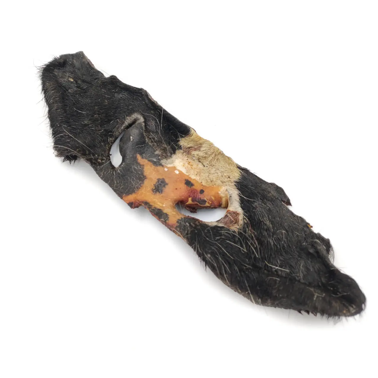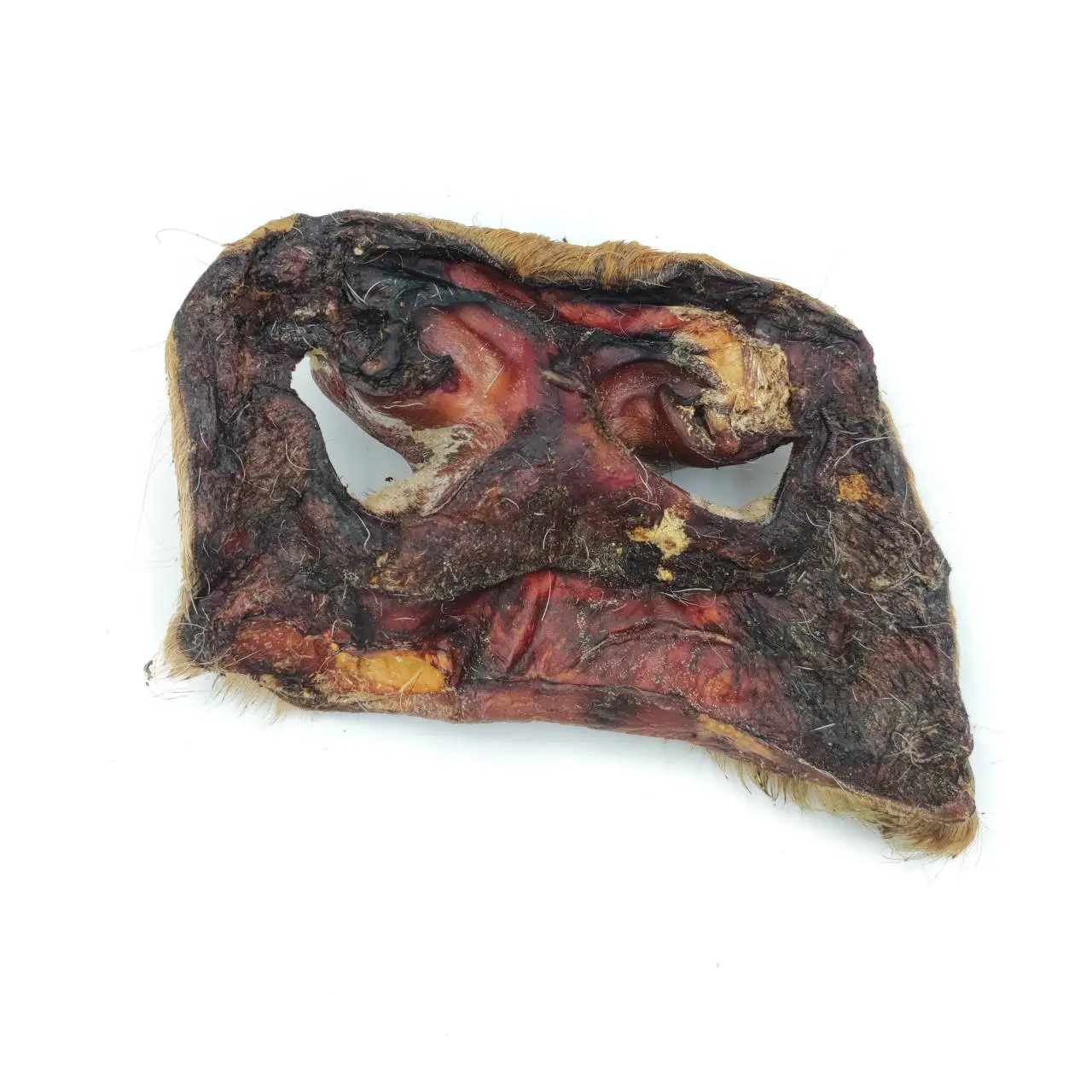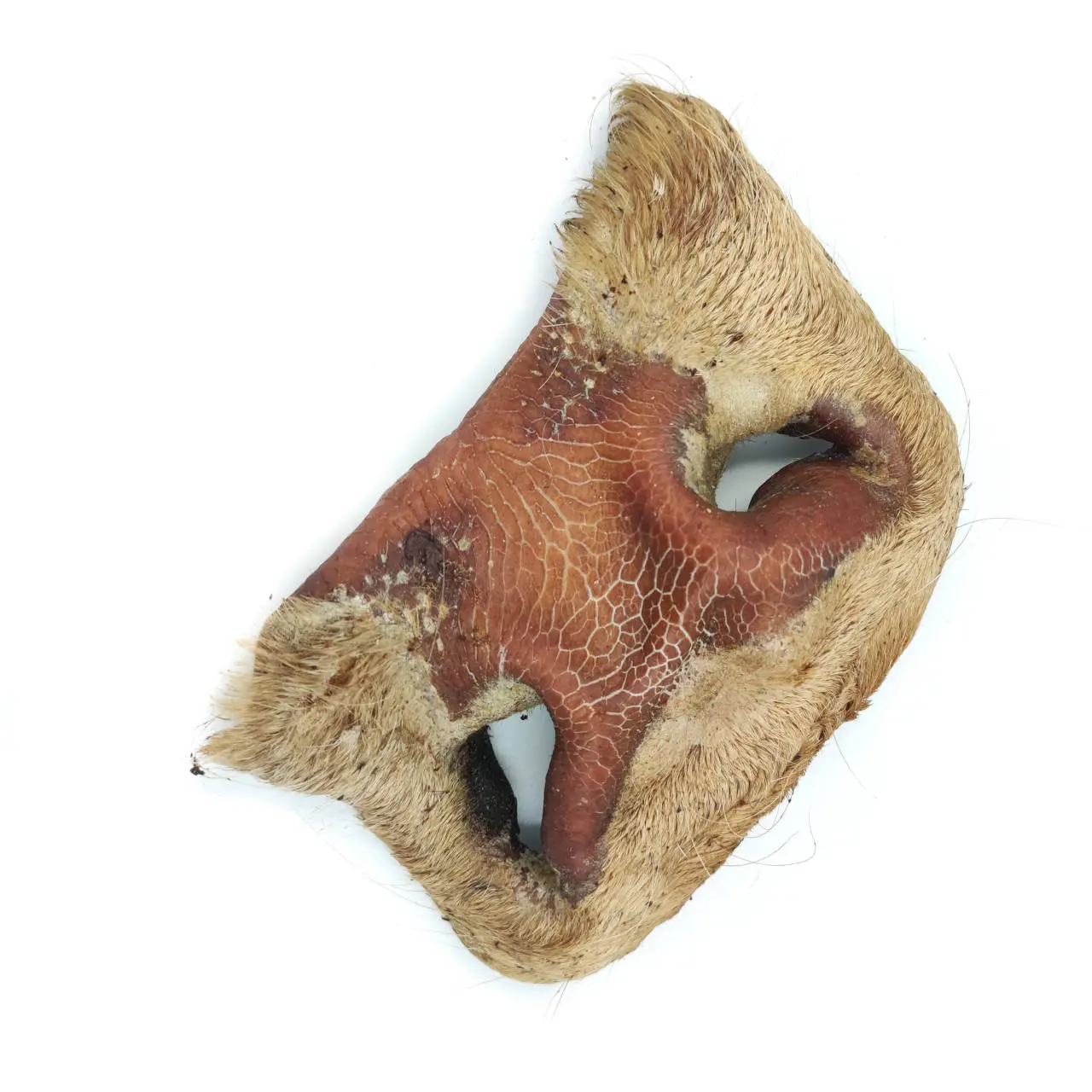Skład analityczny nosa wołowego jest korzystny. Zawartość wilgotności wynosi 12,1%, co czyni go trwałym i utrzymującym swój smak. Tłuszcz stanowi 5,9% składu, dostarczając psu niezbędnych tłuszczy. Wysoka zawartość błonnika, aż 76,5%, wpływa na trawienie i wspiera zdrowie jelit. Popiół w ilości 4,21% to naturalne źródło minerałów, a włókno surowe w ilości 1,5% dodatkowo korzystnie wpływa na zdrowie jelit.