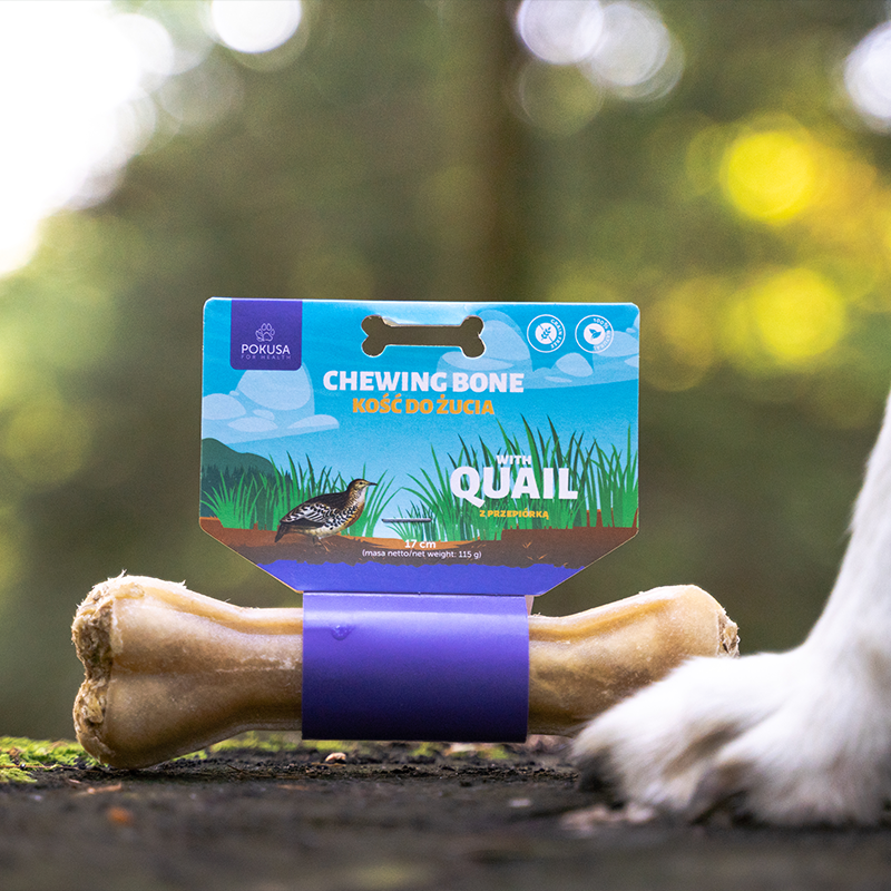 Kość do żucia wyprodukowana z najlepszej jakości skóry wołowej z dodatkiem przepiórki w dzikich ziołach. Doskonałe wsparcie zdrowia i witalności Twojego psa. Dodatek przepiórki zapewnia podaż bezpiecznej ilości magnezu (wzmacnia mięśnie), potasu (pomaga utrzymać odpowiednie ciśnienie krwi oraz napięcie mięśni), fosforu (odpowiada za zdrowe i mocne kości oraz zęby) czy żelaza (jego niedobór prowadzi m.in. do anemii, zmęczenia czy obniżenia odporności), a także witaminy: B1, B2 i E. Oprócz tego mięso przepiórki charakteryzuje się dużą zawartością doskonale przyswajalnego białka oraz nienasyconymi kwasami tłuszczowymi. Dzikie zioła w postaci rozmarynu czy morwy białej stanowią wsparcie układu immunologicznego Twojego pupila.