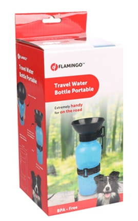 Bidon / butelka dla psa z podajnikiem wody firmy Flamingo jest poręcznym akcesorium na każdą podróż.