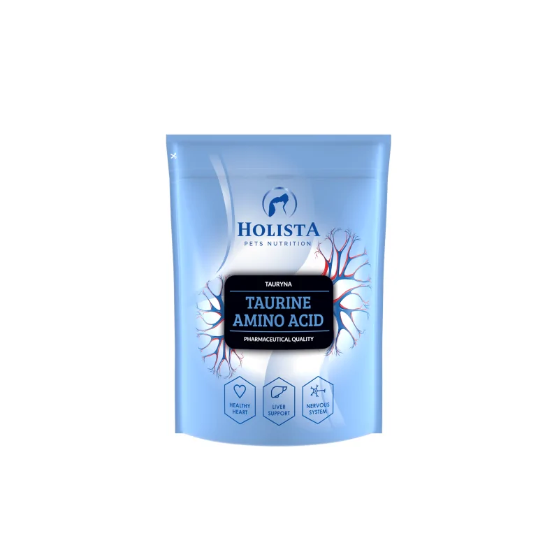 Holista Tauryna 500 g to wysokiej jakości suplement diety w formie proszku, dedykowany dla psów i kotów.