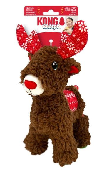KONG Holiday Sherps Reindeer to pełna radości i idealna pluszowa zabawka na święta.