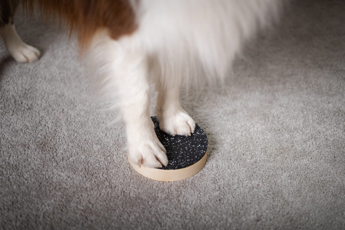 Podest ma średnicę 15,5 cm i wysokość 4 cm, co ułatwia psu pierwsze próby – podwyższona forma sprawia, że łatwiej mu postawić na nim łapę. Target świetnie sprawdzi się podczas: