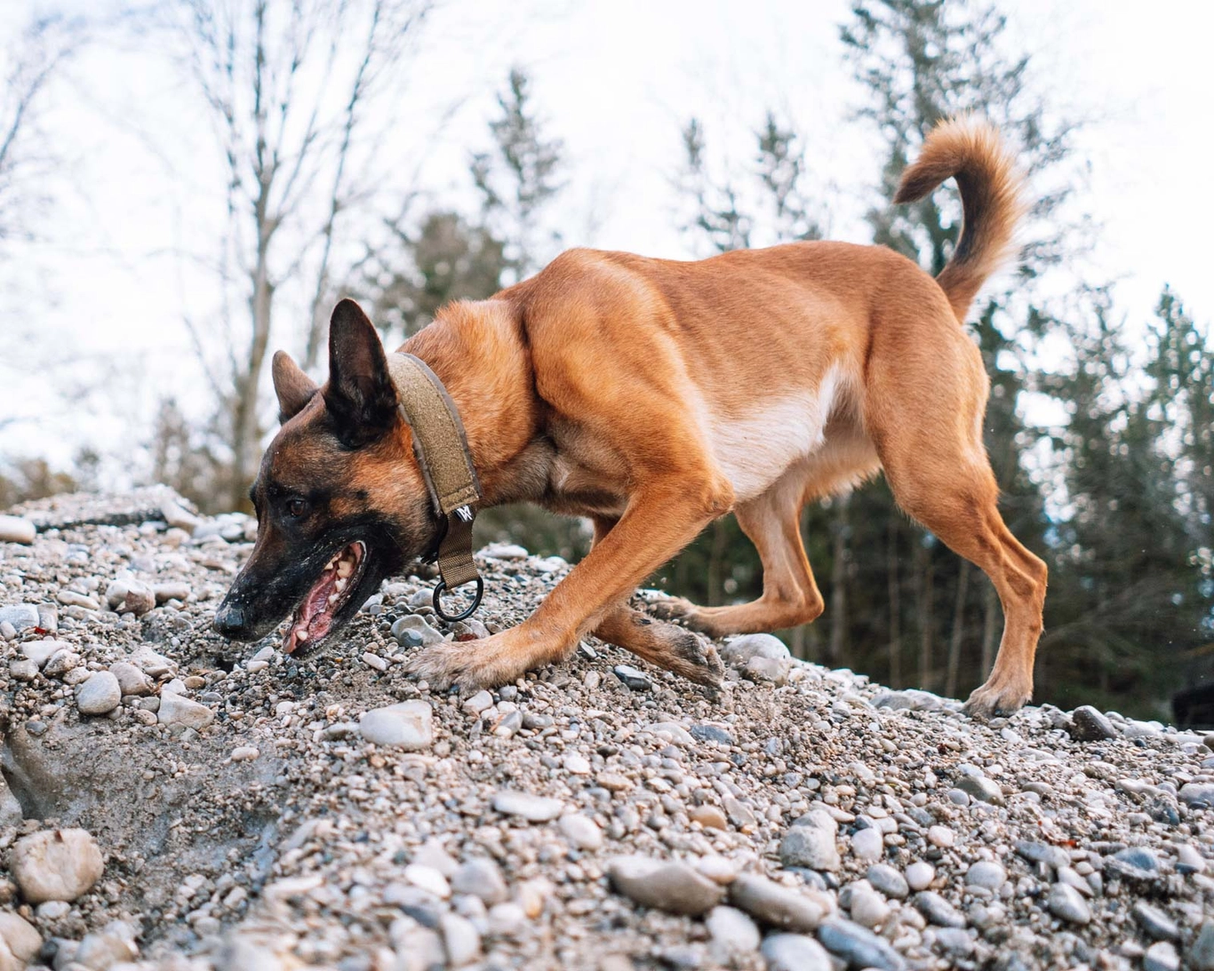 Obroża ma szerokość 50 mm, aby rozłożyć siłę uciągu na dużej powierzchni i być delikatna dla szyi psa. Jest również wyściełana dla większego komfortu.