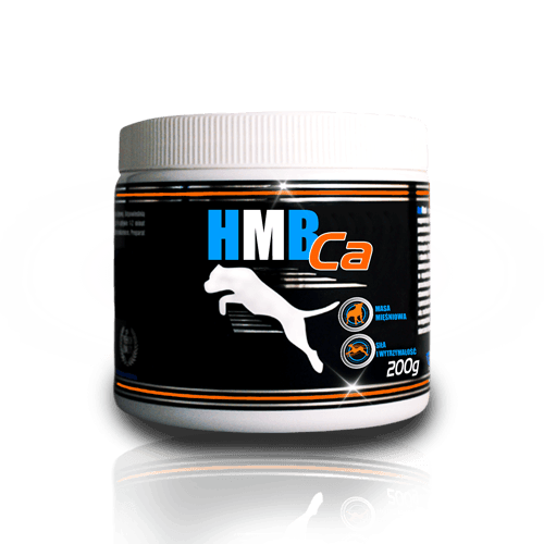 HMB Ca to suplement diety dla psów wspomagający rozbudowę i prawidłowe funkcjonowanie mięśni. Preparat jest szczególnie zalecany dla psów sportowych w celu rozwoju muskulatury, siły mięśniowej i poprawy wyników treningowych. Suplementację HMB poleca się również w przypadkach rekonwalescencji lub długotrwałego unieruchomienia kończyn (złamania, zabiegi operacyjne), osłabienia mięśni towarzyszącego zwyrodnieniu stawów i niechęci psa do ruchu, miopatii oraz innych schorzeń, związanych z uszkodzeniem mięśni szkieletowych.