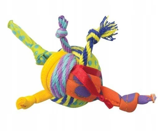 Petstages Piłka Szmacianka to interaktywna zabawka stworzona z myślą o kociej radości i zdrowiu jamy ustnej. Wykonana z wytrzymałych sznurków i tasiemek, tworzy kolorową plątaninę, którą koty uwielbiają podrzucać, gonić i chwytać. Niewielka waga sprawia, że piłka jest łatwa do unoszenia i zabawy nawet dla najmniejszych kociaków.