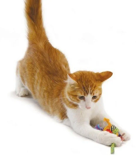 Wystające sznurki pełnią funkcję dentystyczną – pomagają usuwać kamień nazębny i delikatnie masować dziąsła, wspierając higienę jamy ustnej. Dodatkowo zabawka zawiera kocimiętkę, która pobudza ciekawość i zachęca kota do długotrwałej aktywności.