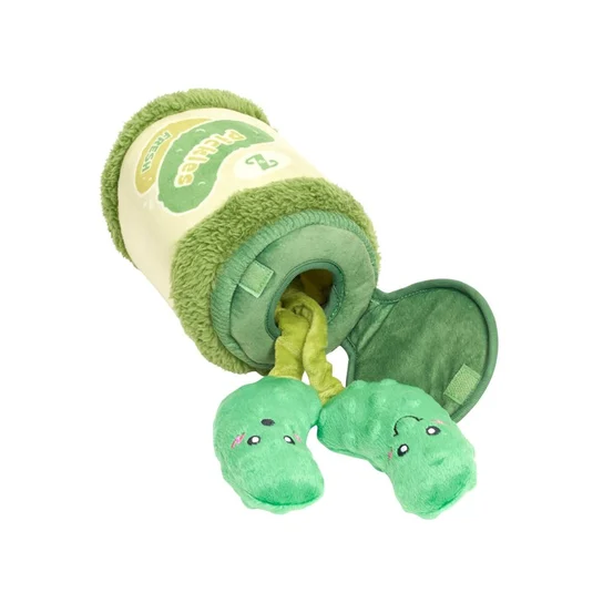 Zabawka uczy cierpliwości, rozwija zmysły i zachęca do aktywności fizycznej. Wystarczy włożyć małe pluszowe „pikle” do norki, zapiąć rzepem i pozwolić psu odkrywać, wyciągać i szarpać swoje nagrody.
